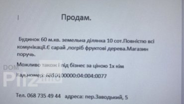 Будинок 60м.кв ділянка 10сот....