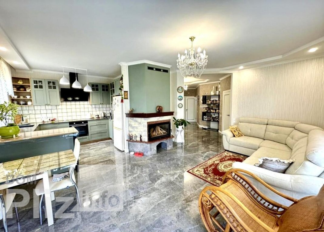 . В будинку велика кухня-вітальня з виходом на терасу, 3 спальні кімнати ( на даний час одна спальня використовується як гардеробна), 2 санвузли, топочна. В вітальні працюючий камін. Опалення - електрокотел, те...