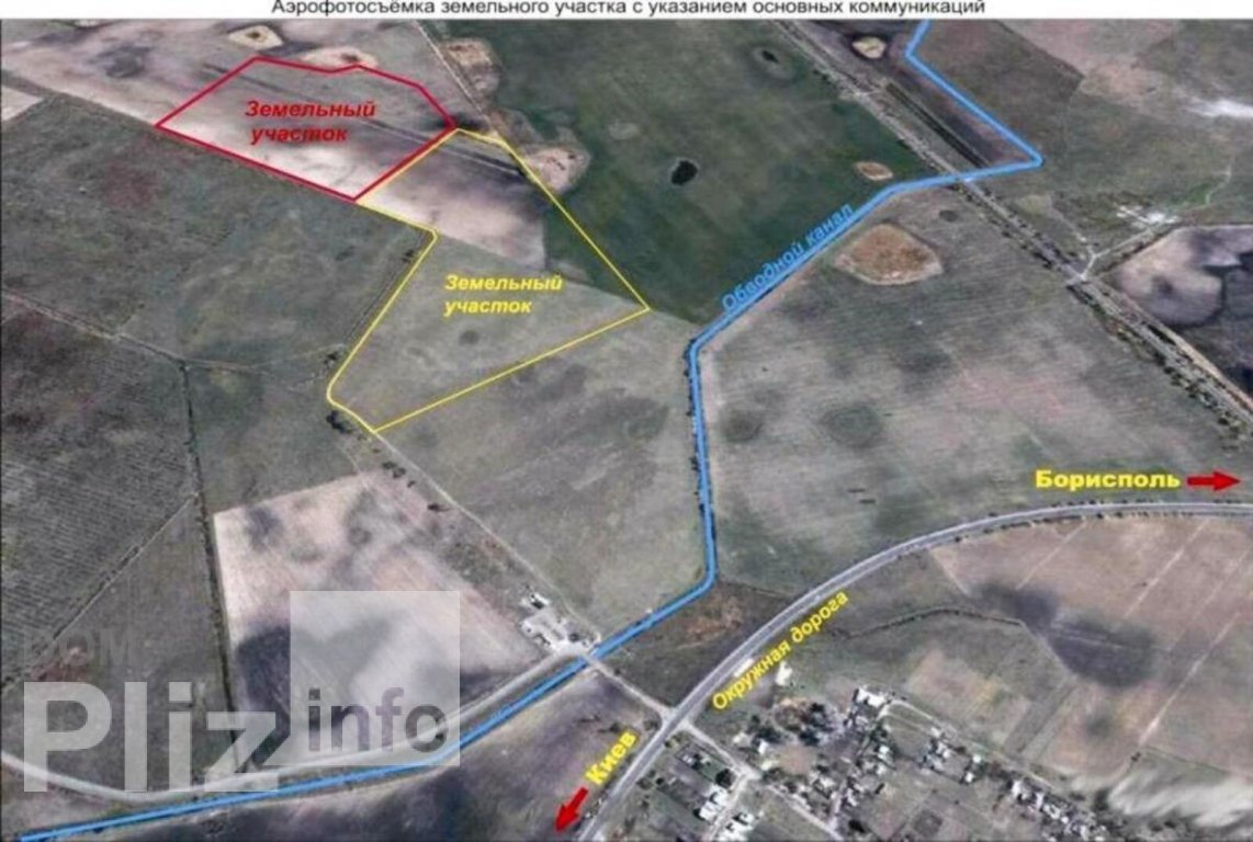 Описание земельного участка: 17,1017 га.Месторасположение и транспортная доступность:Участок находится на расстоянии 22 км от станции метро «Бориспольская» по новой окружной дороге г. Киева.Физические характеристики:Общая площадь участка– 17,1017 га;На участке отсутствуют какие-либо строения и насаждения. Окружающая территория представляет собой поля, все выкупленные частными инвесторами.Коммуникации:Газ находится в 350 м от участка; Электричество не проведено. Неподалеку находится ЛЭП;Водоснабжение – возможно за счёт скважин на участке;Канализация – возможен сброс в канал, проходящий на краю участка (при наличии очистных сооружений).Правоустанавливающая информация:17,1017 га – 3 Государственных акта на собственность;Целевое назначение – «землі промислові, транспорту та звязку для будівництва та обслуговування офісно – складського та торгівельного комплексу».Категория земли – земли промышленности. Коммерческие условия:Форма сделки: а) договор купли – продажи земельных участков; б) договор купли – продажи корпоративных прав.1720 сот