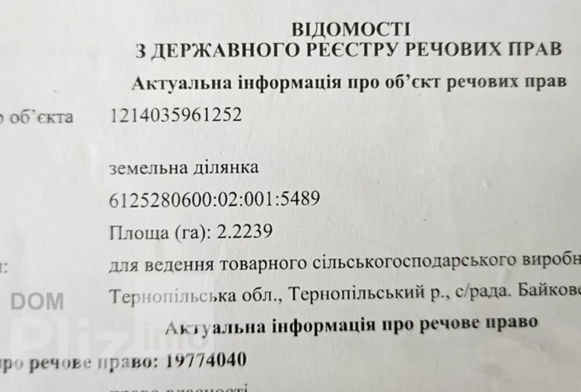 Продається земельна ділянка (ПАЙ) у Байківцях. Площа ділянки 2, 22 Га. Цільове призначення — землі сільськогосподарського призначення.