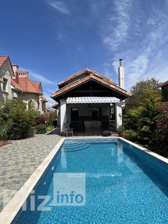 25886. Продам дом на Фонтане. Авторский дизайн в испанском стиле. Современный ремонт из дорогих, качественны материалов. Установлена система теплый пол. 5 спален, в том числе, мастер спальня. Качественная мебель из натуральных материалов. Современная бытовая техника. Три вида отопления. Солнечная станция. Есть подвал 90 кв.м. можно оборудовать под ваши предпочтения. Располагается на четырех сотках земли. Уютный двор в стиле патио с ландшафтным озеленением и фонтаном. На участке бассейн. Паркоместо на 4 автомобиля. 10 станция Фонтана в пешей доступности. Пляж Чайка, набережная. Рядом магазины, кафе и рестораны. Прекрасная транспортная развязка.