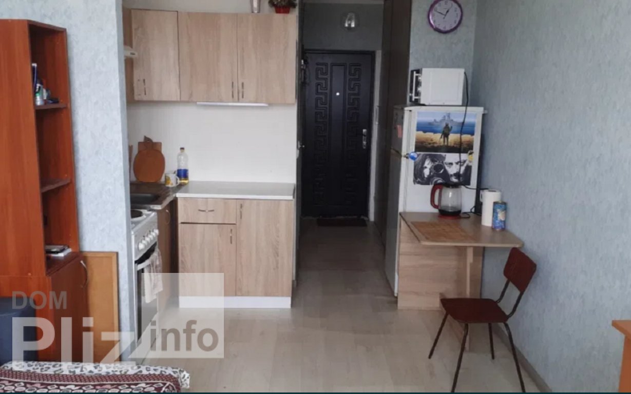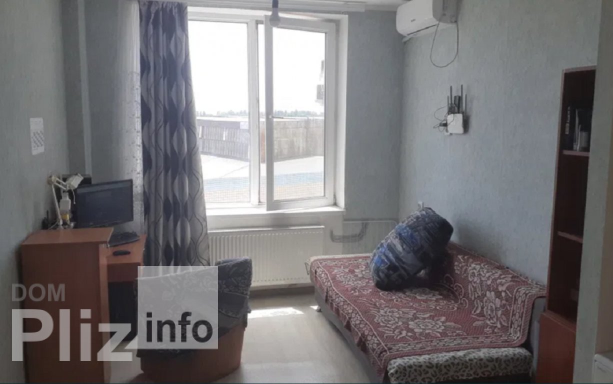 Просторная комната прямоугольной формы S = 19 кв.м., разделена на кухню-прихожую и спальню. В комнате установлено металлопластиковое окно и кондиционер. Ровные потолки и стены, пол - деревянный. Входная дверь -...