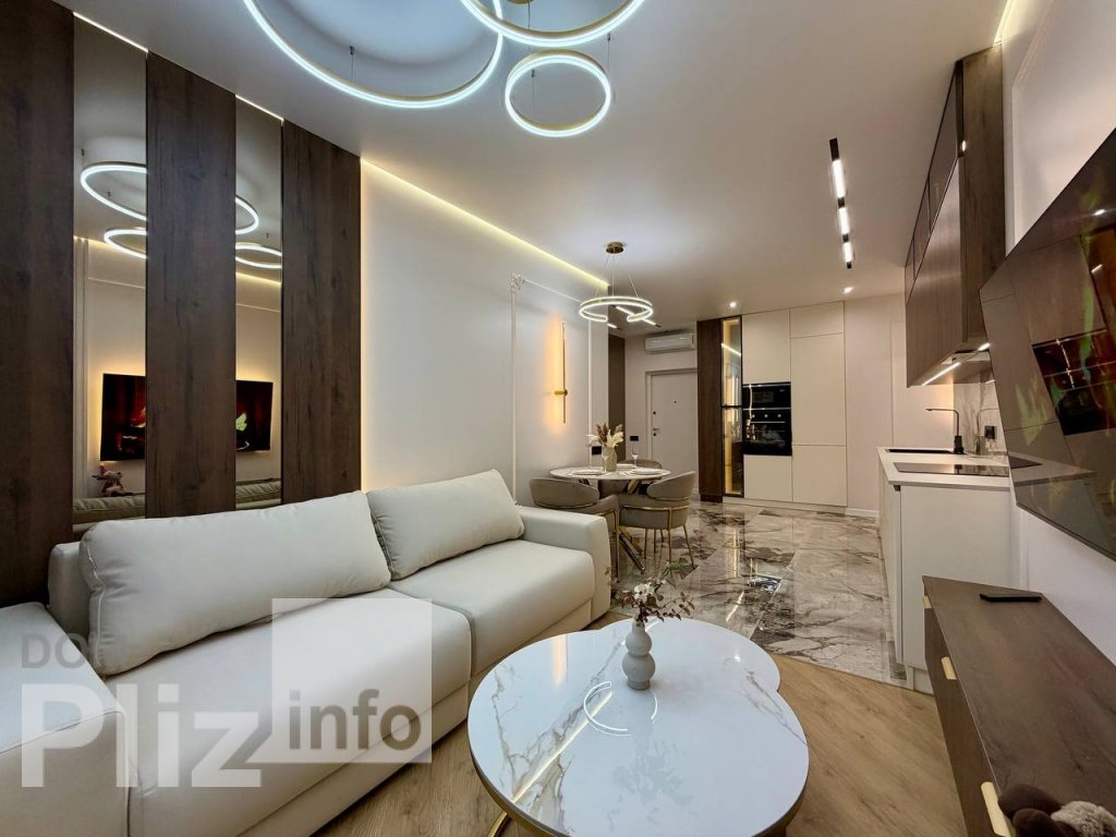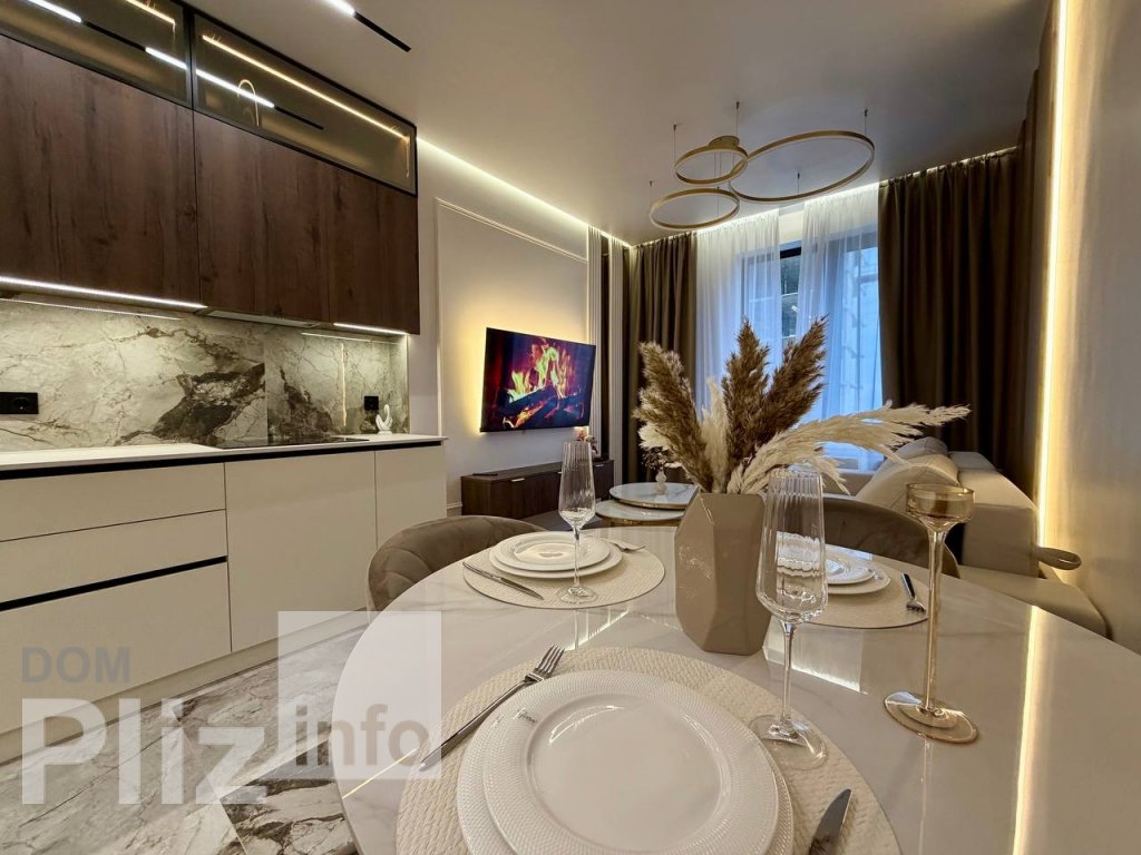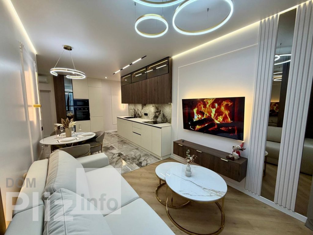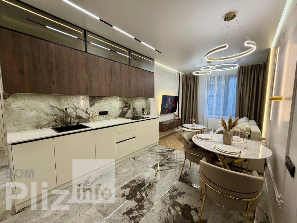 9/16, S=58кв.м. Шикарная квартира с дорогим ремонтом. Кухня-студия и отдельная комната. Большой санузел, совмещен, современно облицован. Встроенная кухня. Кондиционер, стиральная машина, в гостиной мебель. Боль...