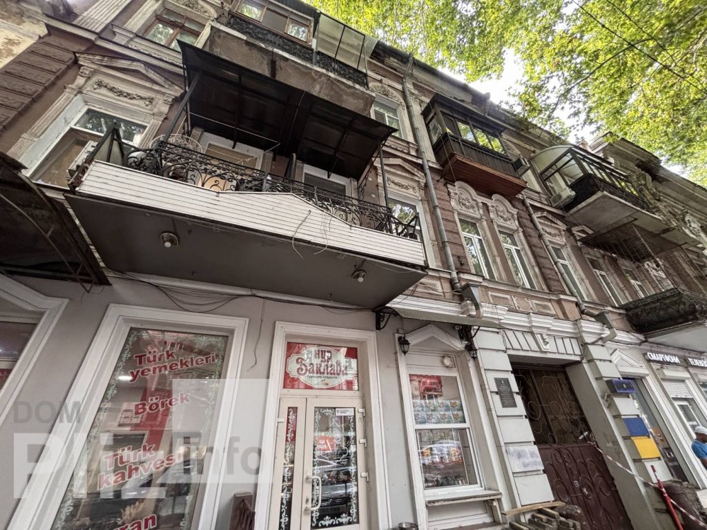 3 этаж 3-х этажного дома. 3 комнаты: 2 раздельные, 1 проходная. Стены ракушняк. Полы деревянные, паркет. 2 выхода из квартиры (чёрный ход). Сан-узел совмещён. Отопление двухконтурный котёл. Высокие потолки. Ест...