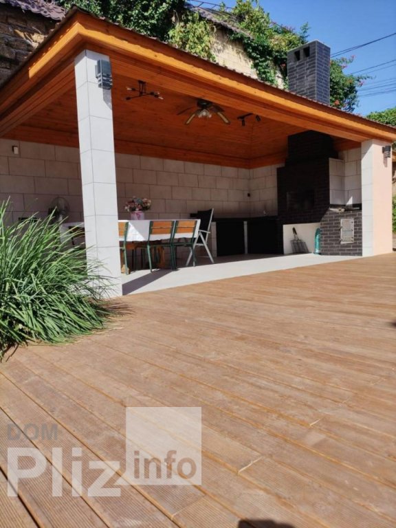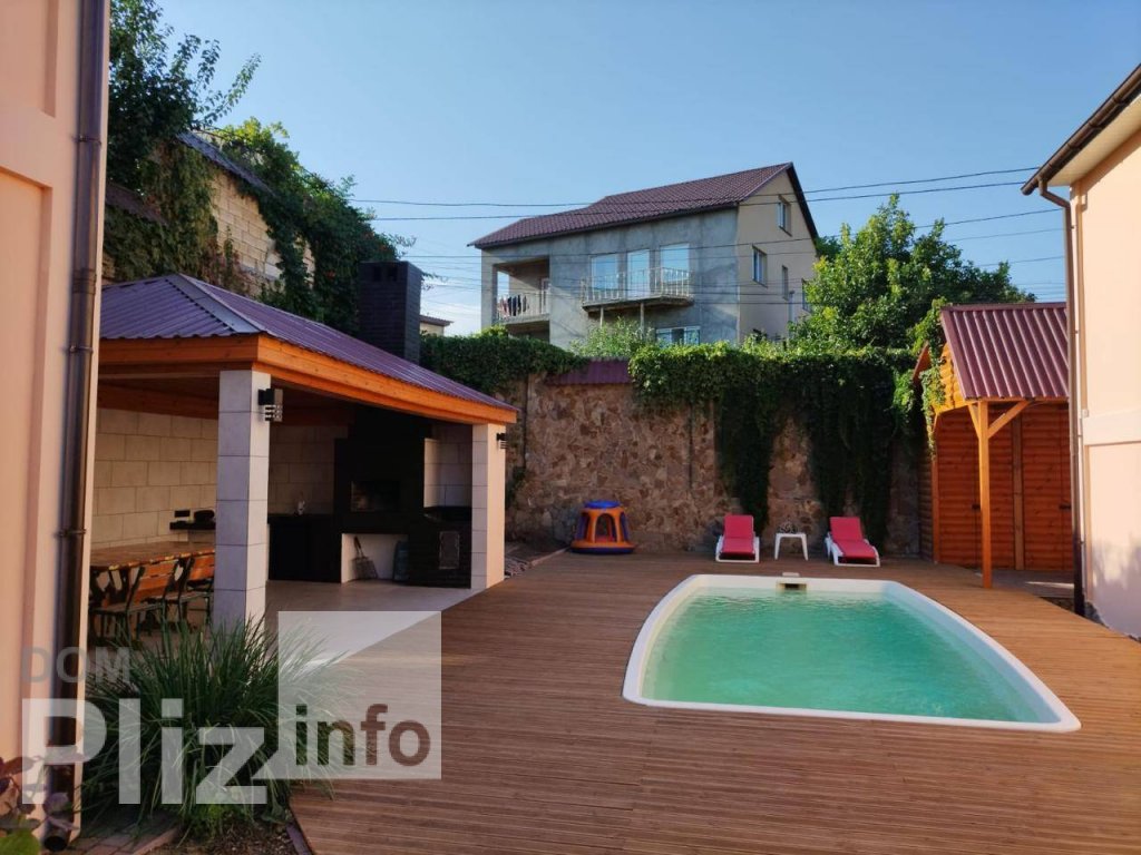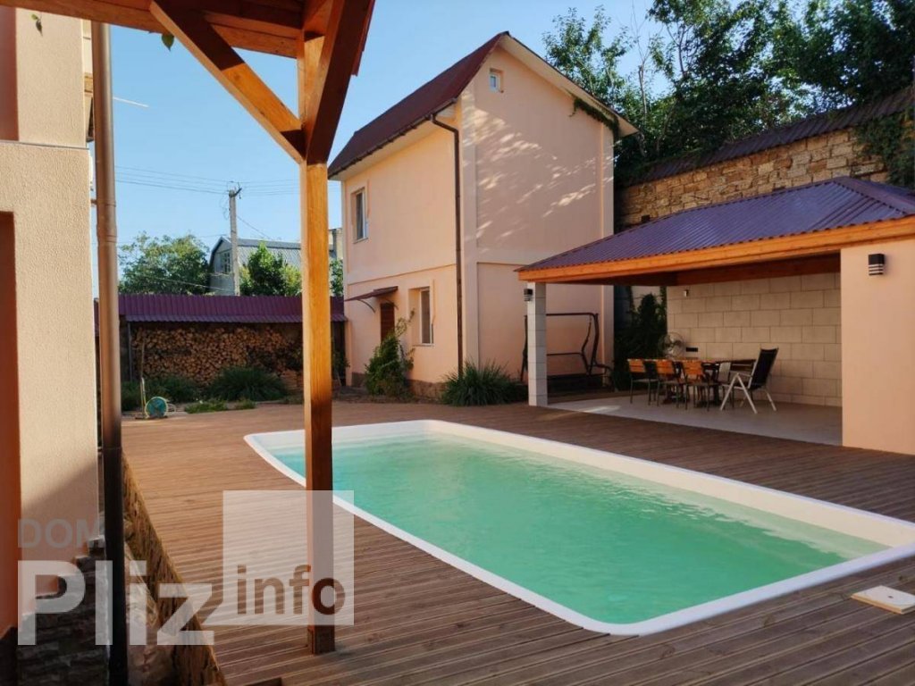 Предлагается к продаже двухэтажный дом с ремонтом. Общей площадью 150 м2. 5 соток земли. Есть кадастровый номер. На первом этаже кухня и гостиная, современный санузел с ванной и гараж. На втором этаже три спальни, рабочий кабинет и санузел. Три кондиционера, на первом этаже тёплый пол. На участке отдельно стоящая баня (на первом этаже кухня-студия, на втором парилка, душевая и санузел. Крытая беседка с кухней и мангалом. Бассейн 7,5 м на 3,5 м с террасной деревянной доской. Крытый навес для парковки двух машин. Резерв воды - бак на 2 тонны. Генератор на 5,5 кВт, работающий от магистрального газа. Два роллета на автомате.Возможна покупка в кредит от 10% годовых до 20 лет. Посредникам, просьба не беспокоить. ID объекта: 209171