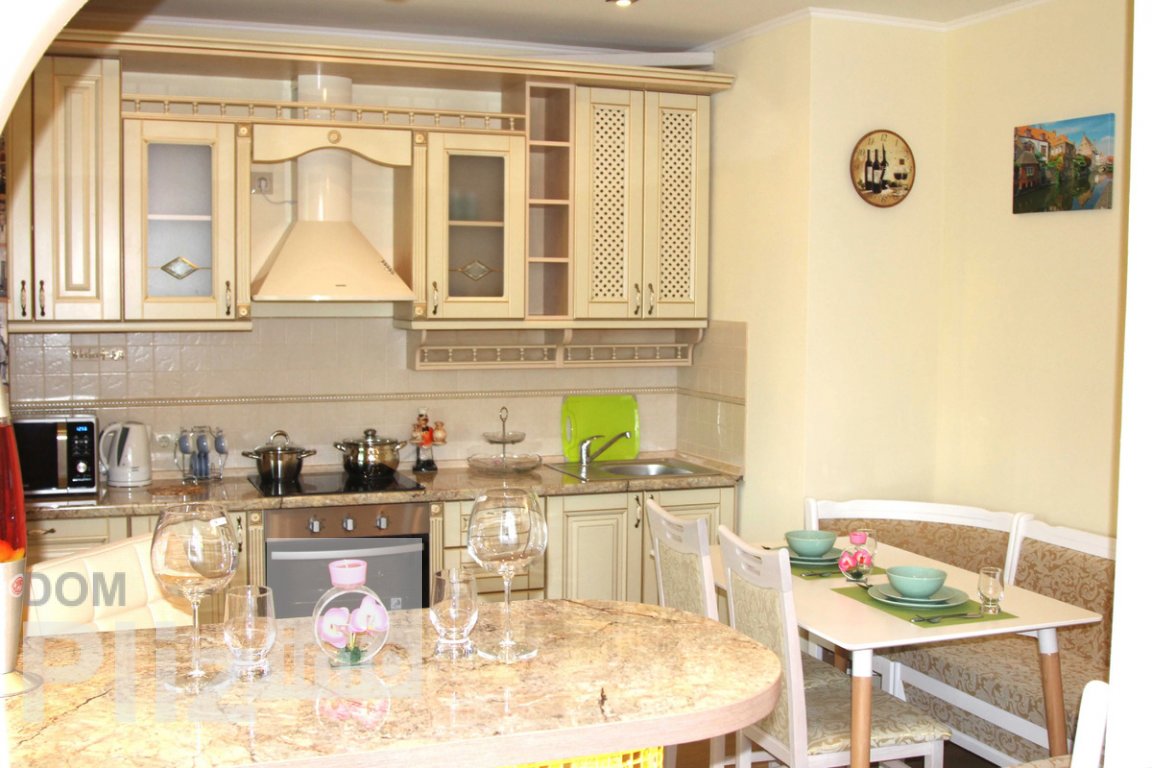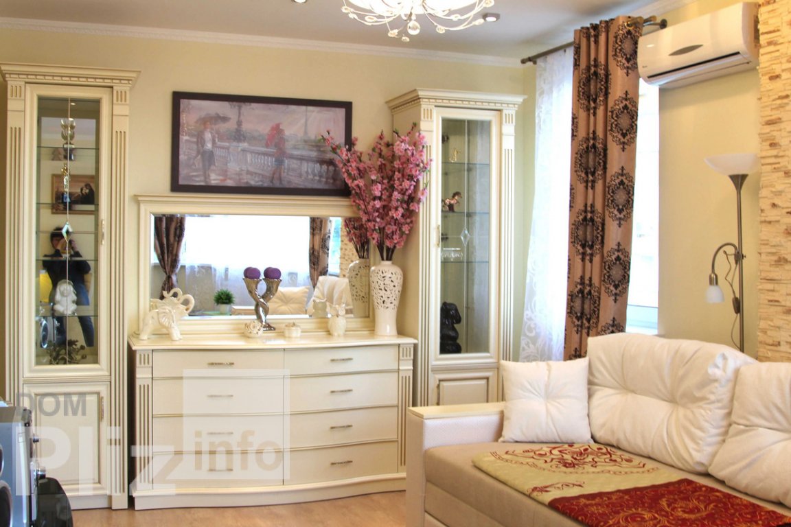 Однокімнатна квартира З усіма необхідними меблями та побутовою технікою. Відмінна інфраструктура, поруч магазини, школа, зупинки громадського транспорта, пошта та ін. У будинку своє котельне. Студіо кухня-вітальня, суміжний санвузол. У квартирі якісний ремонт, нові меблі, сантехніка. Є кондиціонер. Кухня обладнана необхідною технікою, є духовка, варильна поверхня, витяжка, холодильник, мікрохвильова піч, Бойлер, пральна машина. Великий балкон.