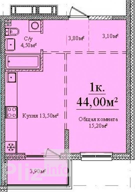 44 м2