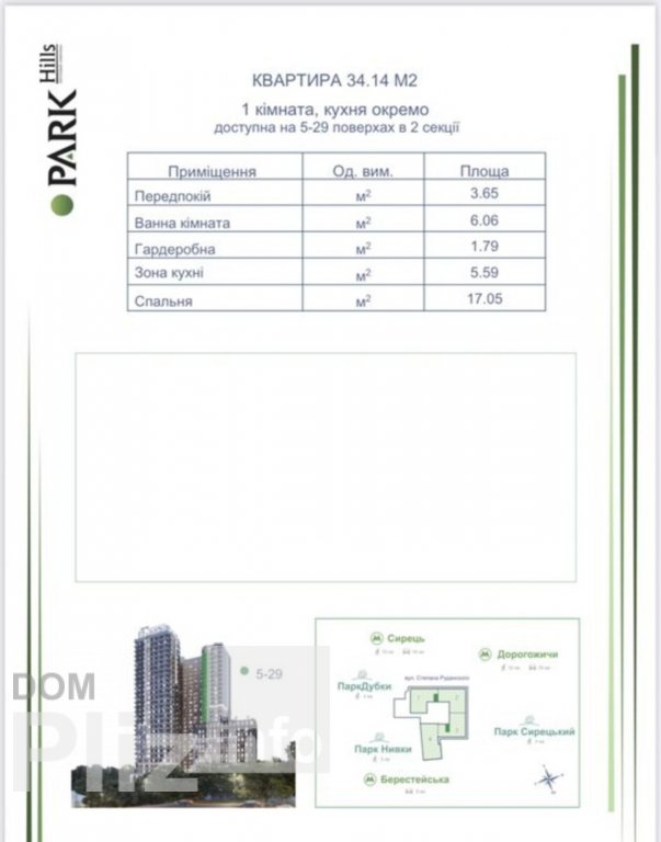 Продам 1к. квартиру Шевченківський р-н., вул. Степана Руданського. Квартира розташована на 5 поверсі 29 поверхів всього. Загальна площа квартири 34.12 кв.м. Стан – після будівництва. ПЕРЕУСТУПКА. Висота стелі 2.8 м. Зовнішнє утеплення. Вода та опалення - централізовані. 3 ліфти. Є паркінг. Зручна транспортна розвязка. У пішій доступності 2 станції метро – Берестейська та Сирець. Неподалік знаходяться 2 парки, магазини, дитяча залізниця. Розвинена інфраструктура. Комісійні 5%