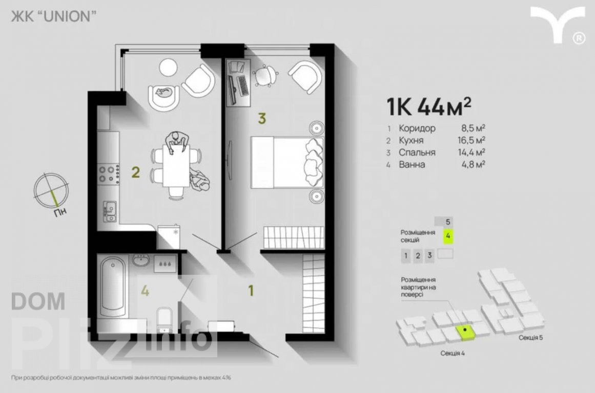 продам 1к квартиру в ЖК Union переуступка 44кв.м. 4секція 8поверх Індивідуальне газове опалення Здача 2кв2024року Вікна виходять на дорогу
