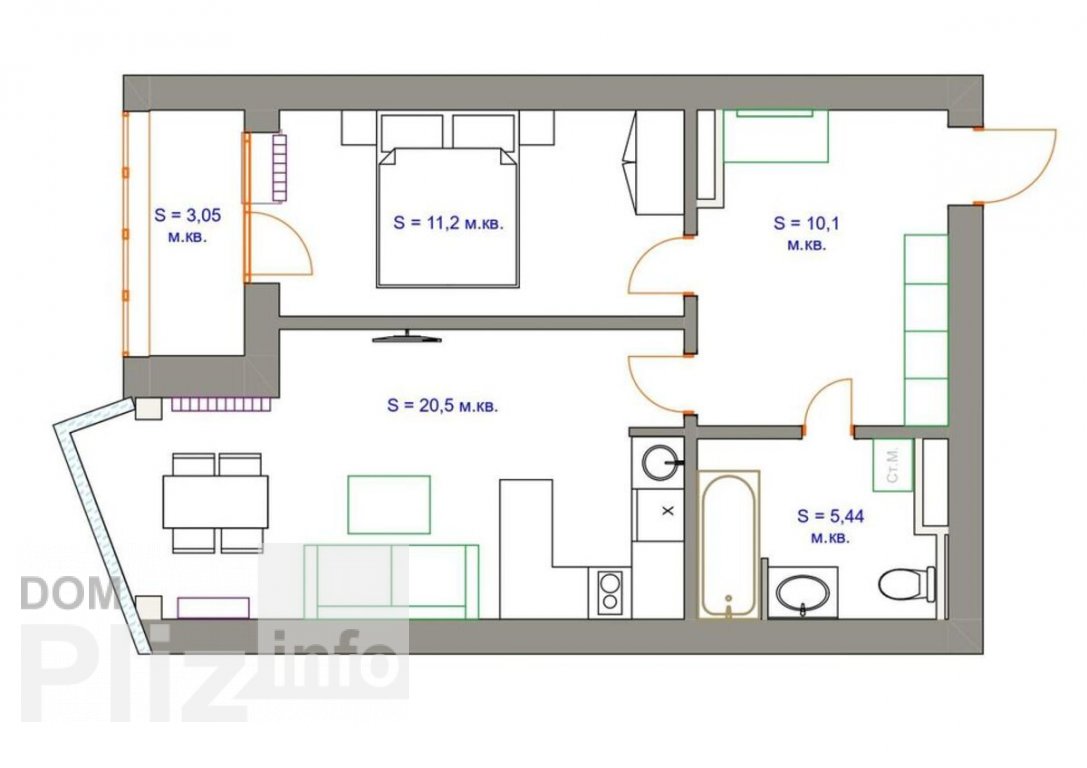 54 м2