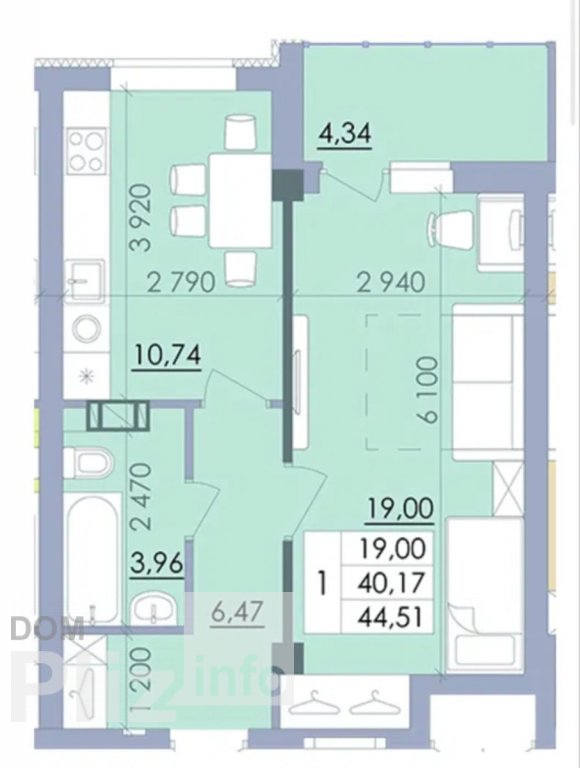 44 м2