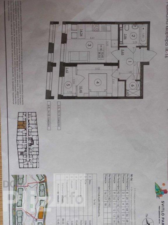 1-кімнатна квартира, Наддніпрянське шосе, 2а, Голосіївський район. Метраж 39/18/15, поверовість 3/18. 1-кімнатна,, простора квартира в новому ЖК Svitlo Park СВІТЛО ПАРК, 6 будинок, введено в експлуатацію. м.Видубичі, Наддніпрянське шосе, 2А (Столичне шосе,5а) 6 будинок (НЕ біля дороги), 3 -й поверх (1-й високий поверх, там нежитлові приміщення, на 2-му поверсі квартири). Вікна виходять у двір на чудовий ландшафт, дитячі майданчики, зони відпочинку та барбекю. Квартира не кутова. Загальна площа 38.55, кухня-вітальня 14.34, спальня 10.45, с/в 3.86, лоджія 2.62, хол 5.65, гардероб 1.63.
