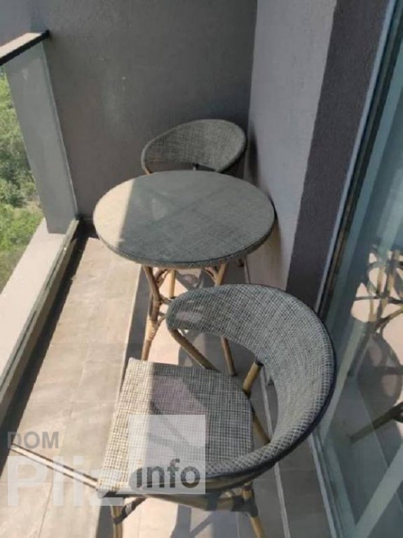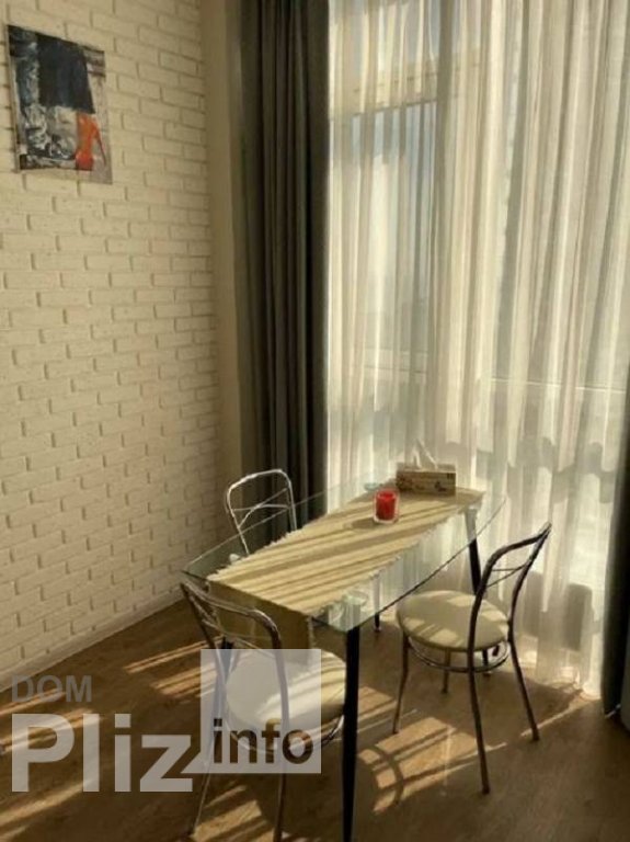Квартира с балконом для летних вечеров. Квартира спланирована с акцентом на общую комнату с выделеной зоной кухни, установлена невысокая перегородка. Спальня - отдельное небольшое помещение со стеклянными перег...