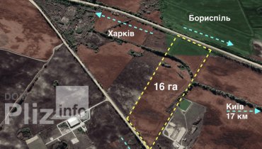 Продається фасадна ділянка площею 16 га на трасі КиївХарків та Бориспільсько-Броварській окружній дорозі Земельна ділянка розташована за адресою: Київська область, Бориспільський район, Іванківська с/р. Основні...