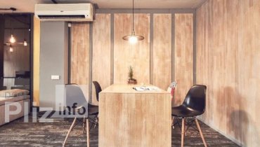 18365 Сдам офис на ул. Гимназической, общая площадь 80 кв. м. В офисе выполнен ремонт в стиле "лофт". Распланирован на 2 кабинета, кухню и с/у. Вместо кровати стоят 2 стола со стульями. В большом кабинете 8 ст...