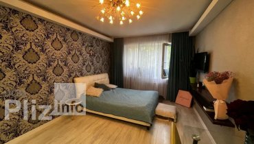 Дуже якісний дизайнерський ремонт, всі меблі виготовлені на замовлення. Планування дуже зручне, місця для всього вистачає. Велика, світла кімната, безліч регулювань світла. Величезна шафа-купе, в яку поміститьс...