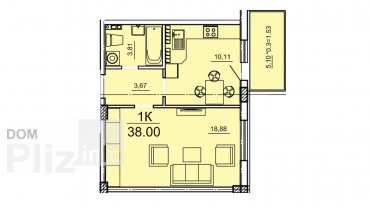 18.88 м2