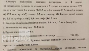 Продаж 3-х кім. кв-ри в м.Полтава, р-н Половки, вул.Кузьми Скрябіна, 8/10 поверх.будинку... Загальна площа-63 кв.м. Житлова площа -37, 1 кв.м. Кухня -9.5 кв.м. Кімнати всі окремі, є балкон і лоджія ... Квартира...