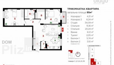 Продається 3 кімнатна квартира 95,3 м.кв Кухня студія Квартира виходить на внутрішній двір і зовнішній, не кутова. ЖК #700; #700; Авторський #700; #700; бізнес-класу. Забудовник Благо. В центрі місто по вул....