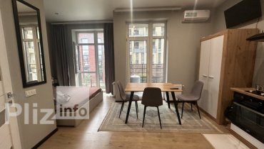 В продаже квартира студия с новым ремонтом, мебелью и техникой с двумя окнами и балконом . Панорамные окна . Санузел облицован плиткой, совмещен . Вид из окон во двор . Автономное отопление, консьерж сервис . У...