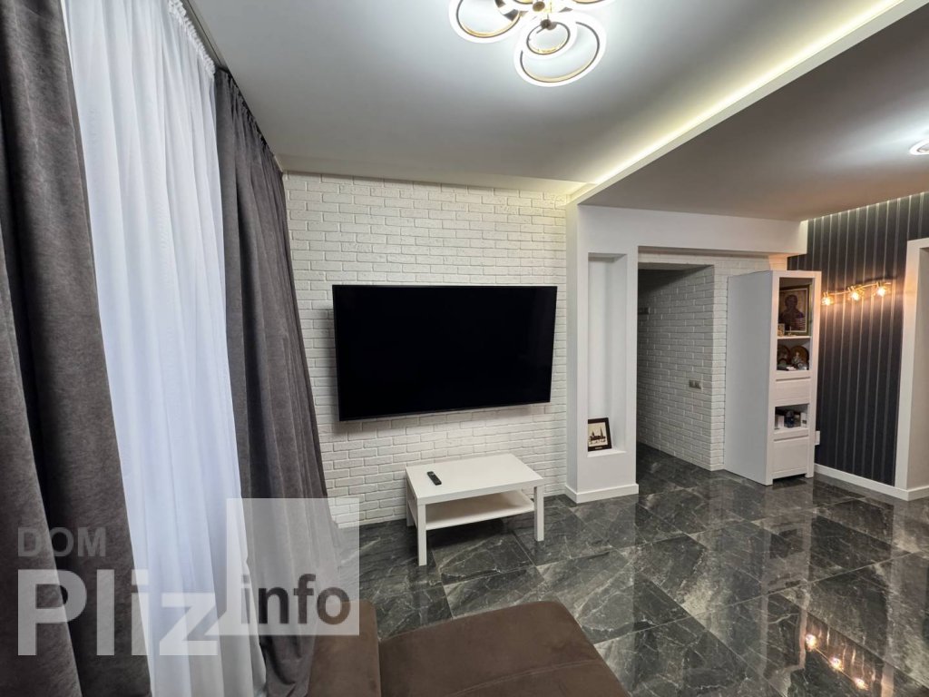 Улучшенная планировка. Большая кухня-студия, 16 кв.м. Две раздельные спальни. Просторный коридор. Санузел совмещен, 6 кв.м. Потолки многоуровневые с точечным освещением. Стены - фактурная штукатурка. Встроенная...