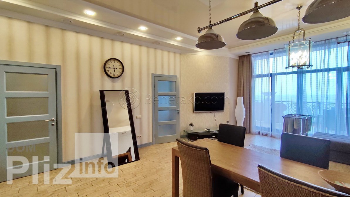 Код: 259. Апартаменти з терасою та видом на море в Аркадії.Код: 259. ПОМІСЯЧНО ОРЕНДА АКТУАЛЬНА У ПЕРІОД З 01.09 ДО 30.05 (у літній сезон здається подобово, від 2-ї доби, раннє бронювання від 4-ї доби). Апартаменти з терасою та видом на море в Ж/К «Аркадійський палац», вул. Аркадійське плато, 5/3, 7/12 пов. удома, загальна площа 110 кв. м. (з урахуванням тераси). Дорогий та якісний ремонт з авторським дизайном, кухня-студія та дві окремі спальні (в одній зі спалень відсутні вікна, встановлені матові стекла, що імітують вікна), у студії комплект м'яких меблів з диваном, що розкладається у двоспальне місце. Два LCD телевізори (у вітальні – 50d), кондиціонери, спліт-система для вентиляції приміщень. У санвузлі душ. Велика тераса з панорамним видом на море та літні меблі. Закрита територія, що охороняється, безкоштовна парковка у дворі (за наявності місць), підземний паркінг (за додаткову оплату), будинок знаходиться прямо над пляжем «Аркадія» за 150 метрів від моря. Найпопулярніший курортний район та центр розваг Одеси з безліччю кафе, ресторанів, нічних клубів та атракціонів. Допускається проживання з тваринами (ціна буде озвучена додатково). Оренда від 6-ти місяців та більше. Вартість може змінюватись в залежності від терміну оренди. Перед переглядом уточніть наявність та деталі по VIBER, WHATSAPP або TELEGRAM, вказавши КОД з оголошення. КОМІСІЯ ЗА ПОСЛУГИ РІЄЛТОРА – 50% від місячної оренди (разова оплата при оформленні договору).