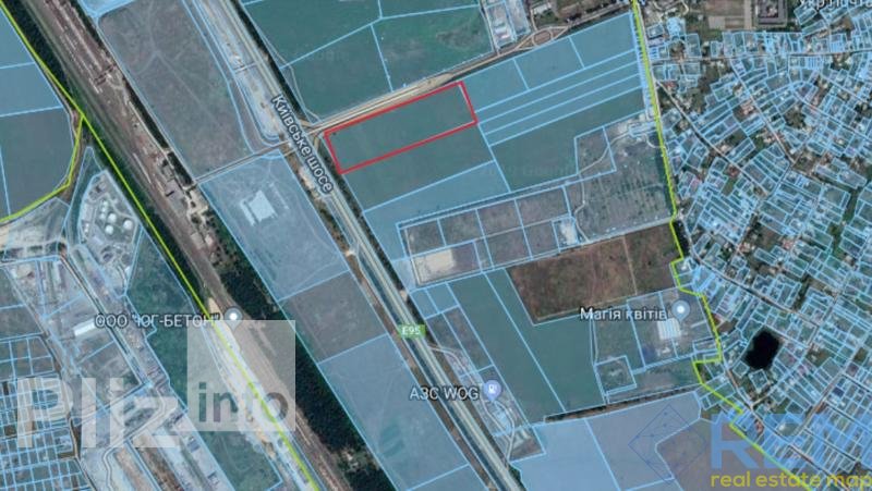 №3302. . . Предлагаем к продаже фасадный участок по трассе Одесса-Киев в 3 км. от города Одесса. Общая площадь 4,59 га. Правильная прямоугольная форма. Двухсторонний фасад. Целевое назначение коммерческое. Есть гос акт. Можно приобрести соседней участок.