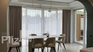 24788 Продам роскошный дом в Совиньоне Общая площадь 202 кв.м.1 этаж: прачечная-котельная, гостиная, кухня-столовая с выходом на задний двор, сан узел, кладовая, гостевая комната.2 этаж: мастер - спальня с гардеробной комнатой и две детские комнаты, одна из которых с гардеробной комнатой. Выход на чердак.Сделан качественный ремонт в стиле неокласика. Резные дубовые двери. Мраморная кованая лестница. Качественная сантехника. Итальянская кожаная мебель на заказ. Бытовая техника мировых брендов.Фасад дома украшен садом и каменным фонтаном.Располагается на участке, площадью 5 соток. На заднем дворе бассейн с подсветкой с шикарными крымскими соснами по периметру. Отдельно стоящая летняя кухня, зимнего типа с двух комнатным подвалом. Гараж на несколько авто.