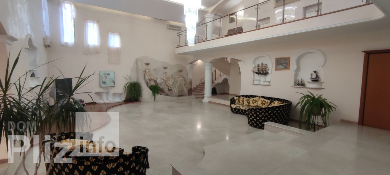 28189. В продаже частный дом в пешей доступности к морю на Фонтане. Просторный участок с ландшафтным дизайном, фасад на две улицы. На участке находятся два бассейна, гостевой домик с патио для бассейна, беседка и сторожевой домик. Сам дом интересной планировки. Большая гостинная с высотой потолка 6 метров с красивой люстрой, кухня - столовая, на весь второй этаж просторная терраса, в каждой комнате санузел.