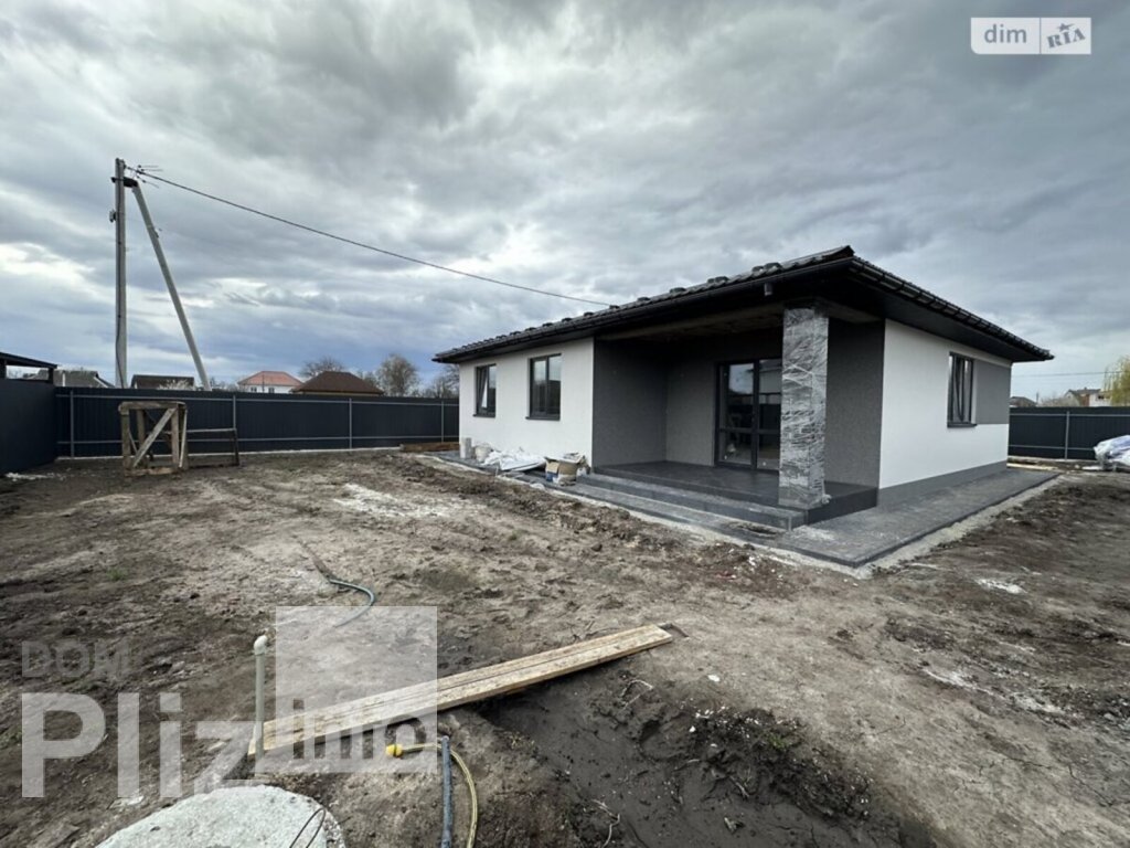 Продаж нового одноповерхового будинку в центрі міста Бориспіль, по вул. Бежівка, 85 кв.метрів, кухня вітальня 27 кв.м, 3 кімнати, котельня з виходом на горище, сан.вузол, тераса. Підключено 15кВт, 3 фази.Під чистове оздоблення( разводка електрики та сантехніки, тепла підлога, встановлений електрокотел, машинна стяжка і штукатурка), скважина, септик, 5 соток землі. 80000$.