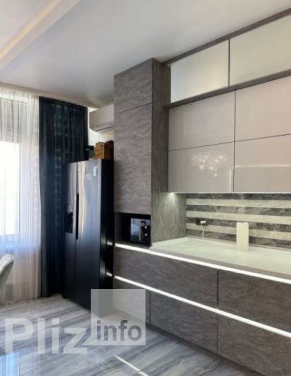 31074 Продается просторная 4-комнатная квартира с изысканным дизайнерским ремонтом в 45 Жемчужине. Общая площадь 145 кв.м.Квартира полностью укомплектована современной мебелью и техникой, которая остается новым владельцам. Планировка продумана для максимального комфорта: кухня-студия, три спальни, два санузла (один с ванной, другой с душевой кабиной), гардеробная и кладовая.В квартире установлены телевизоры, кондиционеры, холодильник, микроволновка, стиральная машина, а также множество шкафов для удобного хранения.Дом оснащен лифтом, работающим даже при отключении света, что делает проживание еще более комфортным.Идеальный вариант для тех, кто ищет стильное, функциональное и полностью готовое к проживанию жилье.