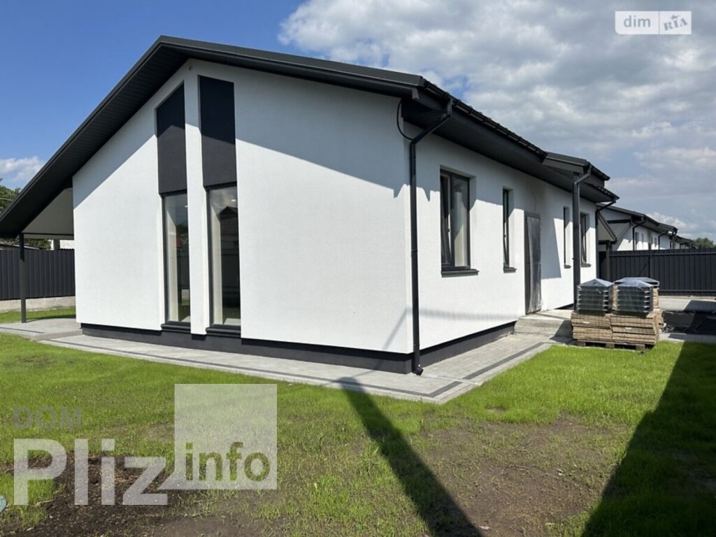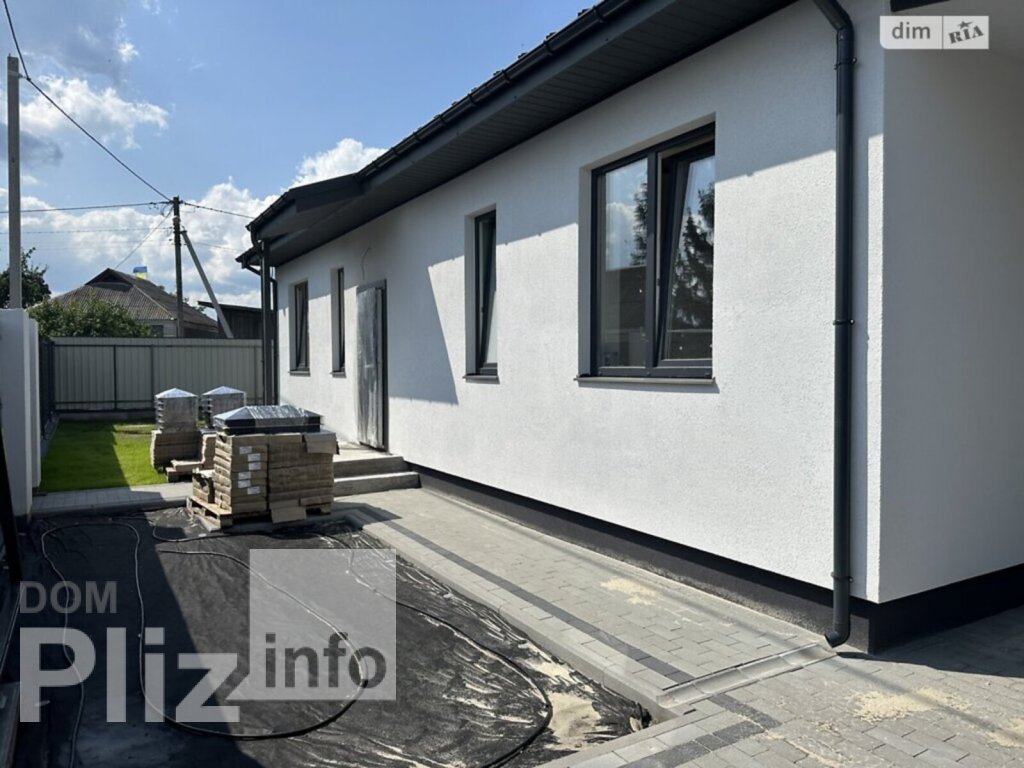 Продаж одноповерхового нового будинку недалеко від центру міста, 85 кв.метрів, 3 кімнати, кухня студія, тераса, автонавіс, посіяний газон, автополив. Будинок побудований з газоблоку, утепленний пінопластом 100мм, дах 200 мм базальтова вата, септик з переливом, скважина 70 метрів, електрика та сантехніка розведена, чистова стяжка пола, гіпсова штукатурка стін. Встановлений електрокотел та бойлер. 15 кВт світло, 3 фази. 5 соток землі.Ціна 92000$, з ремонтом 105000$