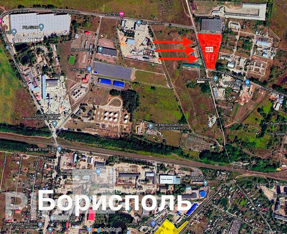 Завокзальна вул. Земельна ділянка 2,2 Га промислового призначення! Розташована у м. Бориспіль по вулиці Завокзальна **Цільове призначення 11.02 Для розміщення та експлуатації основних, підсобних і допоміжних будівель та споруд підприємств переробної, машинобудівної та іншої промисловості **Категорія земель Землі промисловості, транспорту, звязку, енергетики, оборони та іншого призначення **Вид використання Землі промисловості під виробничо-складським комплексом з торгівельними приміщеннями **Форма власності -Приватна власність Фасад ділянки 220 та 50 метрів, два фасади. Зручна логістична розвязка. Бориспільська кільцева 1,7км Асфальтований підїзд На ділянці є старі споруди, водонапірна башта Можливість підключення електроенергії Ціна за сотку 1495$ Для підбору ділянки є зручна Інтерактивна Гугл Карта ділянок, що продаються в Київському регіоні, посилання скину за запитом. На сьогодні понад 2000 ділянок промислового та комерційного призначення у Києві та Київській області! купить участок под производство склад Борисполь Киевская область промпризначення