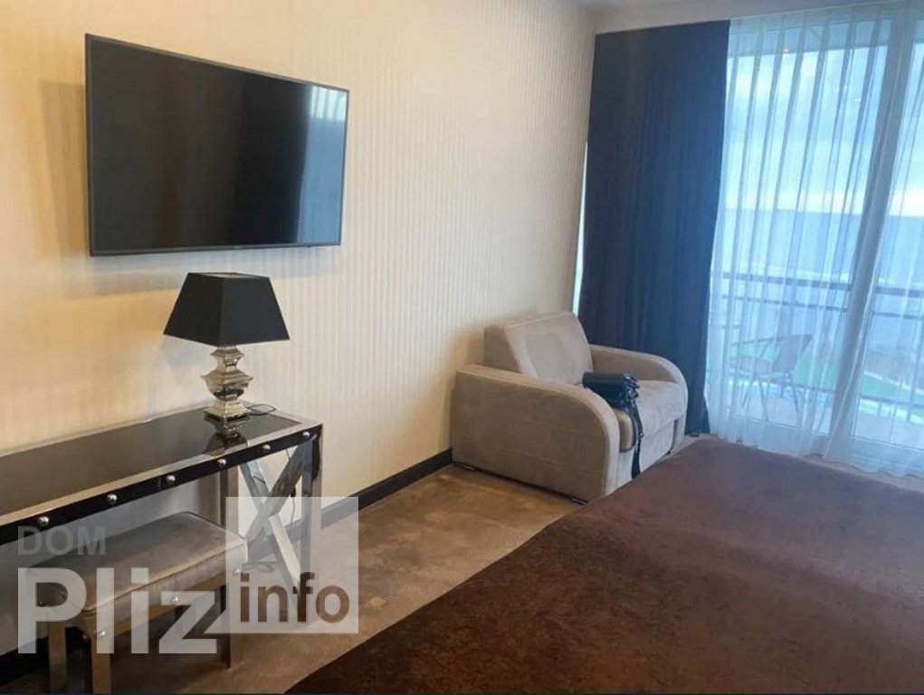 13345 Продам апартаменты в пятизвездочном отеле на первой линии моря. Сделан евроремонт в светлых тонах. Есть необходимая мебель и техника. Панорамные окна, терраса с потрясающим видом на море. В доме есть ресторан, тренажерный зал, бассейн. В шаговой доступности: супермаркет, кафе.