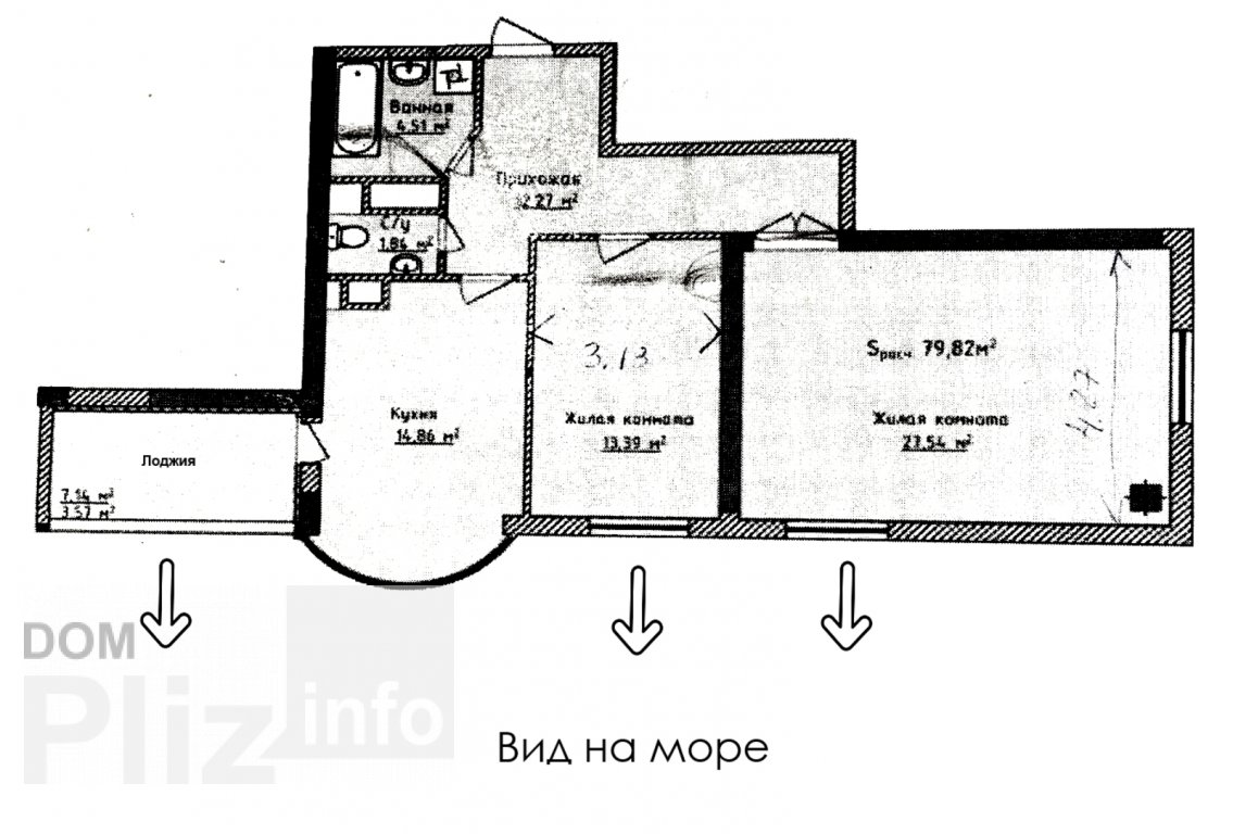 Предлагается к продаже трехкомнатная квартира у самого моря, на 13-й ст. Большого Фонтана. Квартира расположена на 6-м этаже, 10-ти этажного дома. Общая площадь 76 м.кв., три раздельные комнаты 12.3, 10.6 и 14 ...