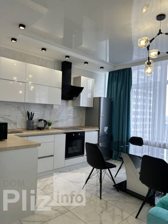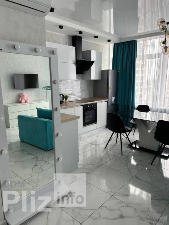 45/20/18 Шикарная квартира в новом доме возле моря. Выполнен современный ремонт в светлых тонах. Спальня и кухня-студия. На полу ламинат. Санузел облицован импортной плиткой. Многоуровневые потолки, точечное ос...