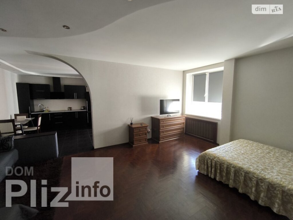 Простора двокімнатна квартира в будинку бізнес-класу 2005 року (високі потолки, лише три квартири на поверсі). Квартира складається з великої студіо (кухня плюс вітальня) та спальні. В домі великий закритий двір із зручною парковкою. Лише 7 хв. на авто, або 4 зупинки тролейбуса до метро Олімпійська. Свіже повітря, тиша, влітку можна спати з відкритими вікнами. Взимку тепло - сонячна сторона.