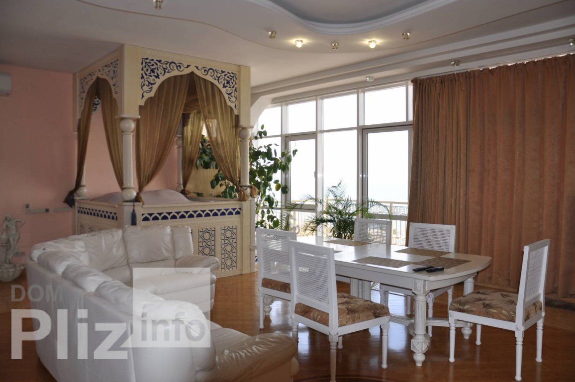 Предлагается к продаже квартира из трех уровней в Аркадийском дворце. Выполнен евроремонт из дорогостоящих материалов. Лестница из дуба, на полу паркет из красной пальмы. Панорамные окна с видом на Аркадию и море. На первом и втором этаже по две комнаты, кухне, санузлу, прачечная. Третий этаж – спальня, бильярд, сауна, кухня-студия с выходом на террасу с красивым видом на море. Система «Умный дом». Идеальный вариант под гостиничный бизнес.Возможна покупка в кредит от 10% годовых до 20 лет. Посредникам, просьба не беспокоить.