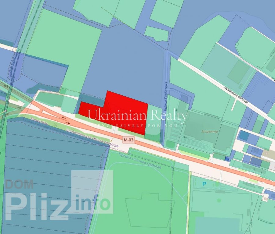 м. Бориспіль, вул. Горбатюка, 3 Фасад траси Київ — Бориспіль, безпосередньо навпроти виїзду з аеропорту “Бориспіль” ? Характеристики: • Площа: 2.9969 га • Кадастровий номер: 3210500000:05:001:0042 • Форма продажу: Продаж корпоративних прав • Оренда землі • Вартість: • $ 790 000 загалом • $2 600/сотка • протяжність фасаду на трасу Київ-Бориспіль 300 метрів, глибина ділянки - 100 метрів ? Цільове призначення: “Для розміщення та експлуатації основних, підсобних і допоміжних будівель та споруд підприємств переробної, машинобудівної та іншої промисловості” ? ? Переваги: • Фасадне розташування на міжнародній трасі Київ — Бориспіль Сусіди: • Зліва — Епіцентр • Справа — АЗС BVS • Прямо навпроти виїзду з аеропорту • Є проект та МУО на будівництво кафе та автостоянки • Дозвіл на заїзд із траси ? Ця ділянка — ідеальне місце для обєкта з високим трафіком: ТРЦ, ресторан, fast food, СТО, мийка, офіси логістики або виставковий майданчик. комерційного призначення, промпризначення, під забудову