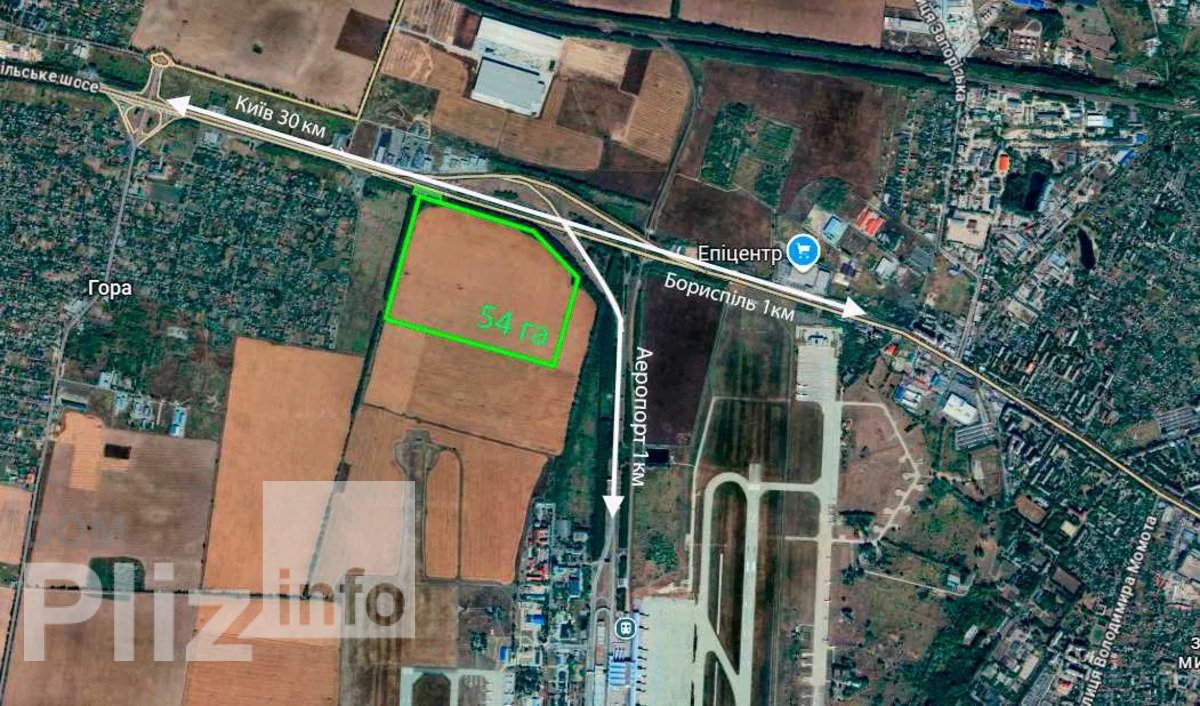 ФАСАД. ЕКСКЛЮЗИВНА земельна ділянка 54га біля аеропорту Бориспіль. Пропонується унікальна земельна ділянка площею 54 га у стратегічно вигідній локації — безпосередньо біля Міжнародного аеропорту «Бориспіль». Локація Фасадне розташування на Бориспільській трасі Е-40 u002F М-03 Поворот до Міжнародного аеропорту «Бориспіль» 1 км до аеропорту ~30 км до м. Київ Високий автомобільний трафік, відмінна видимість з траси Характеристики Площа: 54 га Рівна, правильної форми Зручні підїзні шляхи Можливість поетапної забудови Цільове призначення Цільове призначення дозволяє будівництво та обслуговування: -промислових обєктів -логістичних центрів -складських комплексів -торгово-комерційної нерухомості -логістичних парків, distribution hub Ідеально підходить для: -девелоперів -інвесторів -логістичних компаній -міжнародного бізнесу -великих ритейл-мереж Переваги -Одна з найкращих локацій під логістику в Київській області -Безпосередня близькість до міжнародного аеропорту -Фасад траси міжнародного значення -Високий інвестиційний потенціал -Обмежена пропозиція землі такого масштабу Є можливість добрати до 300 га одним масивом в цій локації!. Відстань до найближчого міста: до 5 км.; Тип нерухомості: Земля промисловості, транспорту та іншого призначення;