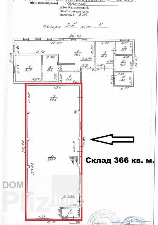 О Р Е Н Д А : Склад з рампою 373 кв. м. Перечин Закарпаттям. Перечин, вул. Богдана Хмельницького 26Площа 366 м2, 1 поверх, склад плюс 7 кв. м. рампа Опалення, вода, каналізація.Електрика – до 100 КВт. Можливо збільшенняВисота 7,5 метрівБезпильова підлогаПідійде під склад або виробництвоЦіна 201 грн/м2 +ОПЕКС