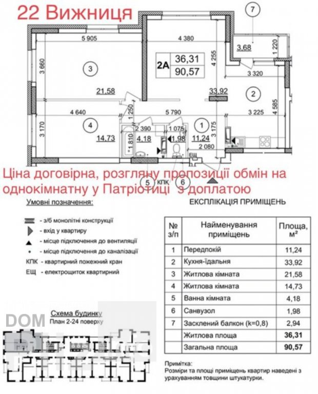 2-кімнатна квартира 88.3 кв.метра Дарницький район вул.Срібнокільська 1, станція метро Позняки 3 хвилини ходьби, до ст.м.Осокорки хвилин 10-15 пішки. Дві роздільні кімнати, загальна площа 88.3 кв.м., житлова 44...