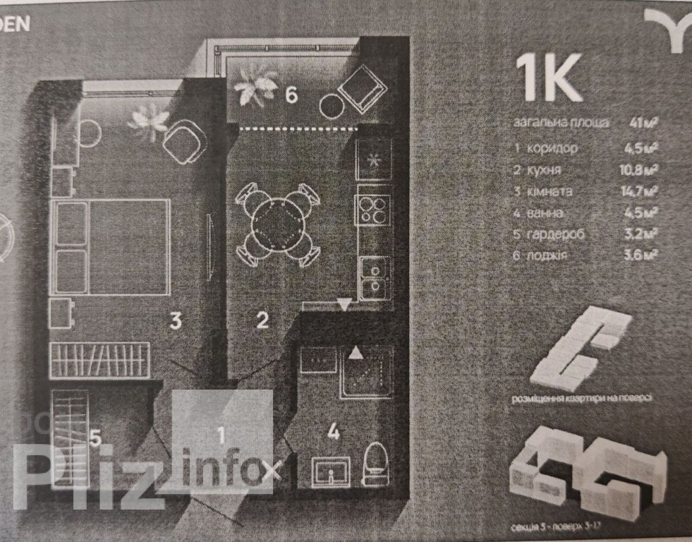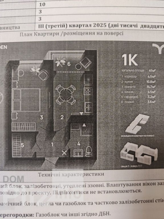 Однокімнатна квартира 41м., ЖКSkyGarden , секція 3 , поверх 3. Плановий термін здачі 3 квартал 2025