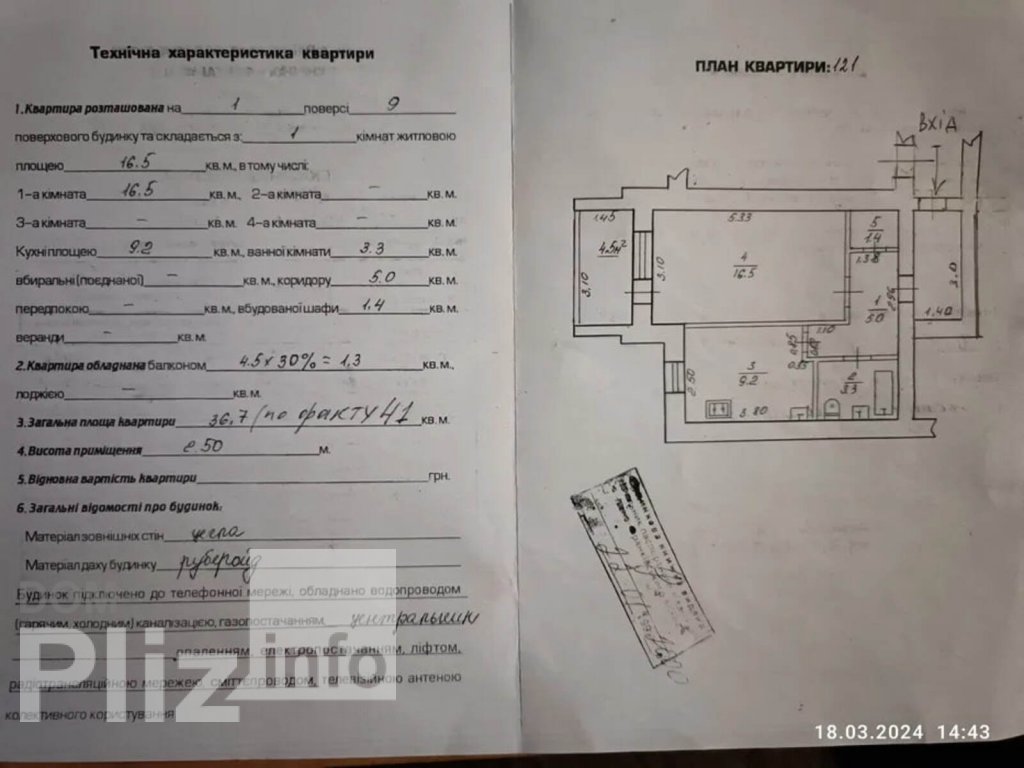 Продається однокімнатна квартира по вул. Г. Мазепи 179, напроти маркету Сільпо. Квартира знаходиться на першому поверсі, поверх високий, лоджія на висоті 2.30 м від рівня землі. Можна використати під перукарню, салон, зубний кабінет. Площа 36.7 м.кв., по факту 41 м.кв. за рахунок загального коридора +4 м.кв., кімната 16.5 м.кв., кухня 9.2 м.кв., санвузол 3.3 м.кв., коридор 5.0 м.кв., кладова 1.4 м.кв., лоджія 4.5 м.кв. На лоджії облаштований підвал, індивідуальне опалення, стан- після житлового використання, потребує косметичного ремонту, можна заходити і жити. Можна продати з меблями, диваном, холодильником, пральною машинкою.