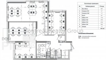 Аренда просторного офиса в центре Киева по адресу улица Шота Руставели. Этаж 2/22 этажного здания. Общая площадь офиса 142 м2. Фотографии и планировка соответствуют реальности. Планировка - рабочие зоны + кабин...