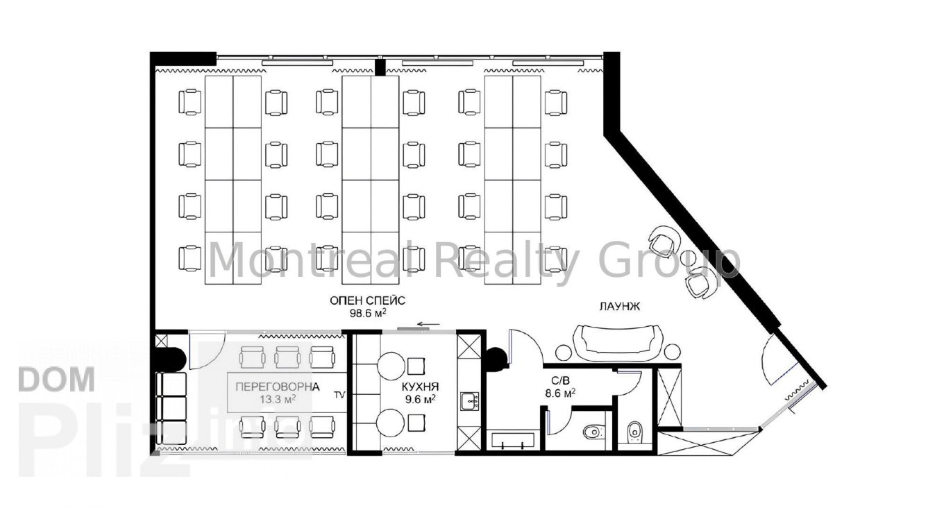 Аренда просторного офиса в центре Киева по адресу улица Шота Руставели. Этаж 2/22 этажного здания. Общая площадь офиса 142 м2. Фотографии и планировка соответствуют реальности. Планировка - рабочие зоны + кабин...