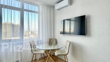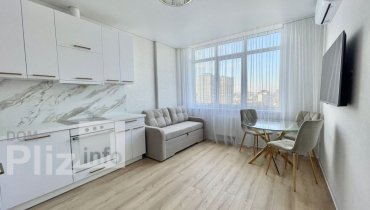 Здається квартира. Дизайнерський ремонт. Планування: окрема спальня із двоспальним ліжком і ортопедичним матрацом, гардеробна, сучасна ванна та простора кухня-вітальня з розкладним диваном. В квартирі є прально...