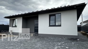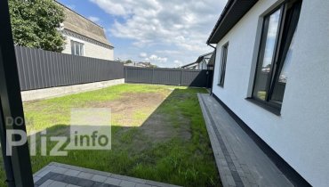Продаж одноповерхового нового будинку недалеко від центру міста, 85 кв.метрів, 3 кімнати, кухня студія, тераса, автонавіс, посіяний газон, автополив. Будинок побудований з газоблоку, утепленний пінопластом 100м...