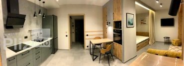 Затишна студія на Леваді. Комфортабельна студія в новобудові на Леваді. Чудовий панорамний вид з великого еркерного вікна (8й поверх). Вдале дизайнерське зонування кухні-їдальні, спальної зони, зони відпочинку,...