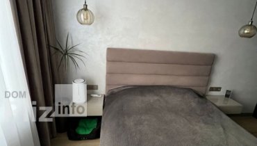 Планування - спальня з гардеробною кімнатою, кухня, ванна кімната, балкон з панорамними вікнами. У квартирі виконано якісний ремонт. Є все необхідне для комфортного життя. Укомплектована меблями та обладнана те...